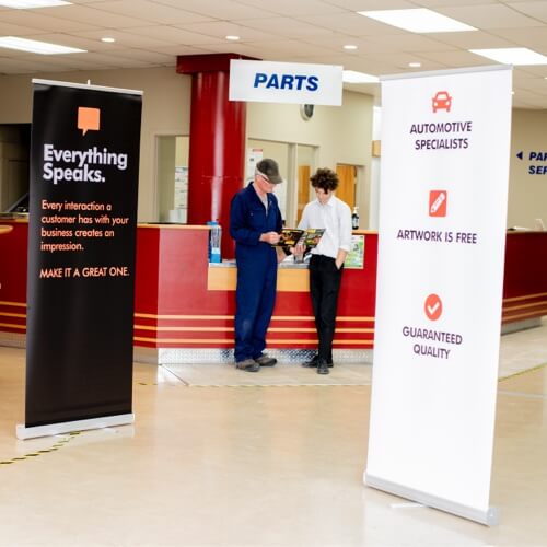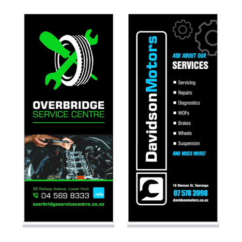 Easy to use pull up banners are an affordable and informative tool that can up sell your workshop services in your workshop reception or at a trade show. Supplied in a black zip up carry case with slick silver base.