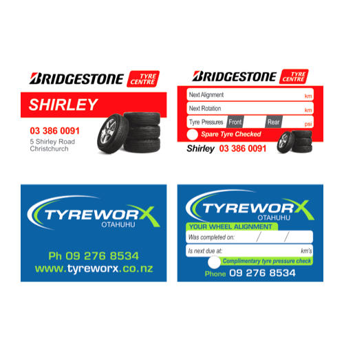 If you’re fitting, fixing or aligning tyres or wheels and serious about advertising, you NEED customised tyre stickers, and we’re so committed to producing the best stickers available that we designed and built our own equipment to produce them.